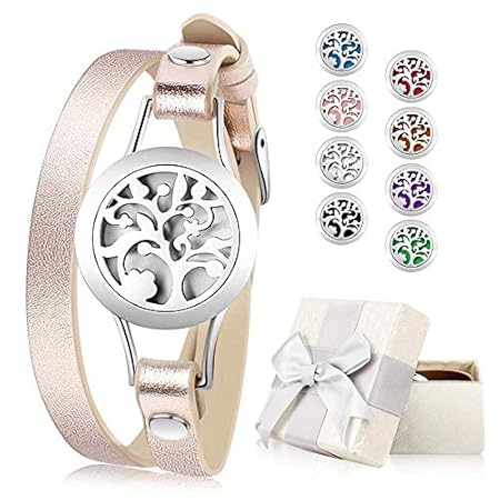 Essential Oil Diffuser Bracelet, Aromatherapy Bracelet Jewelry Stainless Steel Locket Leather Band with 8pcs Washable Refill Pads Birthday Gifts for Women,Girlfriend, Mother,Sister,Aunt.