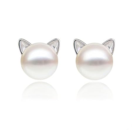 S.Leaf Cat Earrings Pearl Earrings Sterling Silver Studs Earrings for Women
