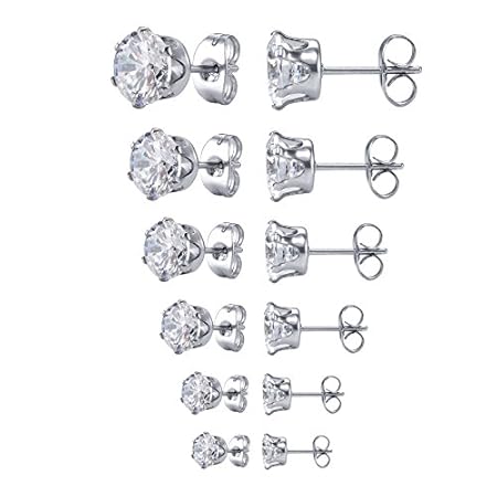 Jstyle Jewelry Women’s Stainless Steel Round Clear Cubic Zirconia Stud Earring (6 Pairs)