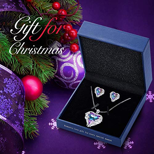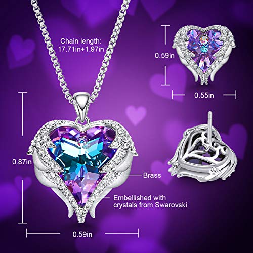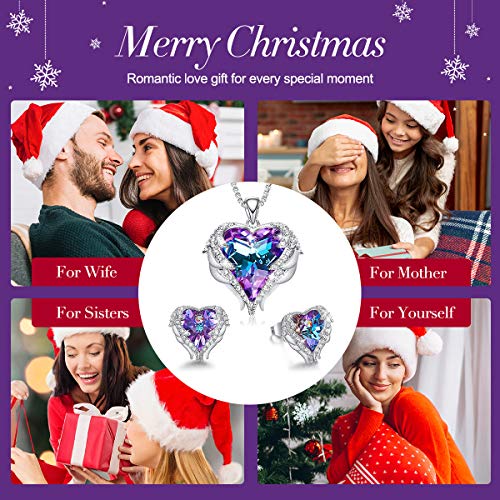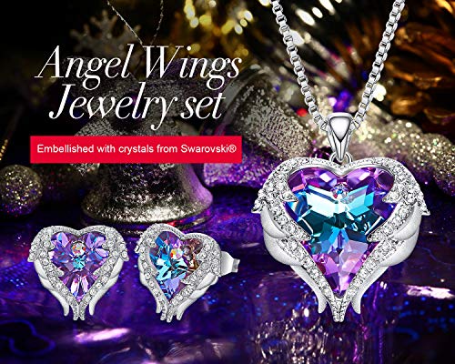 CDE Angel Wing Heart Necklaces and Earrings Christmas Jewelry Gifts Embellished with Crystals from Swarovski 18K White Gold Plated Jewelry Set for Women