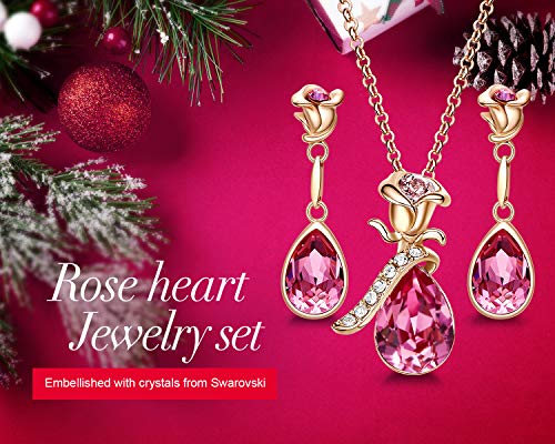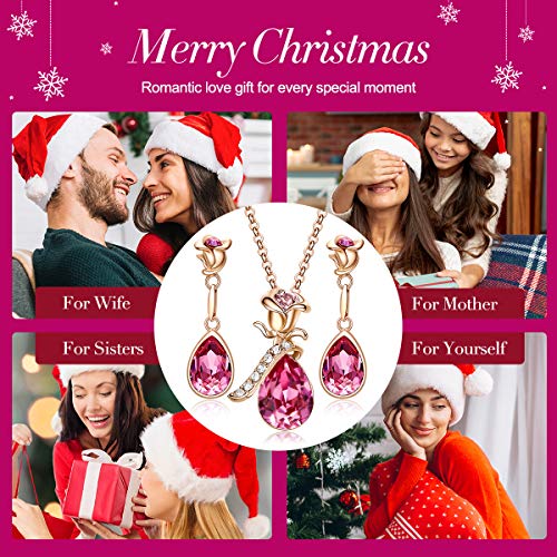 CDE Necklace Earrings Set for Women Christmas Jewelry Gifts 18K Rose Gold Plated Jewelry Sets Embellished with Crystals from Swarovski