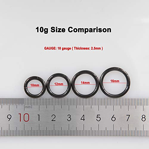 1. 10mm Septum Ring / 10mm Hoop Earrings: 10 gauge (thickness: 2.5mm), inner diameter 10mm ( 25/64 inches ). Please check the inside diameter carefully according to the SIZE CHART OF THE HOOP NOSE RING. Select the most suitable size for yourself.