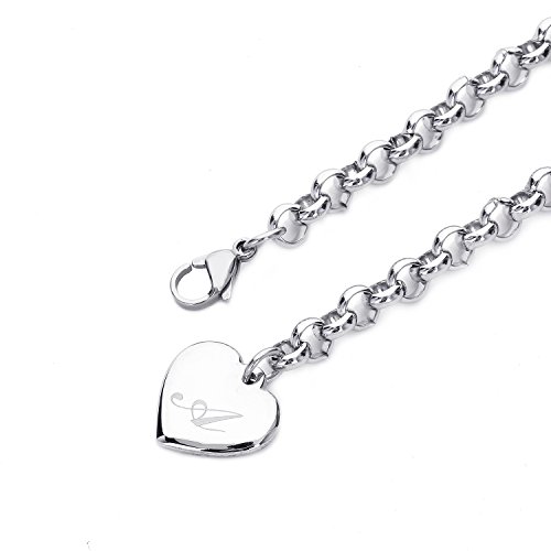 Monily Initial Charm Bracelets Stainless Steel Heart 26 Letters Alphabet Bracelet for Women