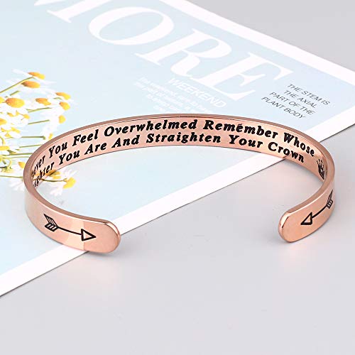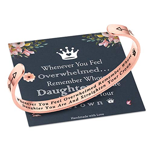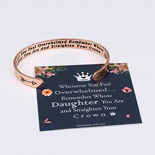 GIFTS FOR DAUGHTER: Daughter bracelet with engraved hidden message whenever you feel overwhelmed…remember whose daughter you are and straighten your crown. Motivational quote inspirational bracelet makes perfect reminder jewelry to women who is grieving a loss or struggling to overcome illness or disease, encourage her to keeping going.