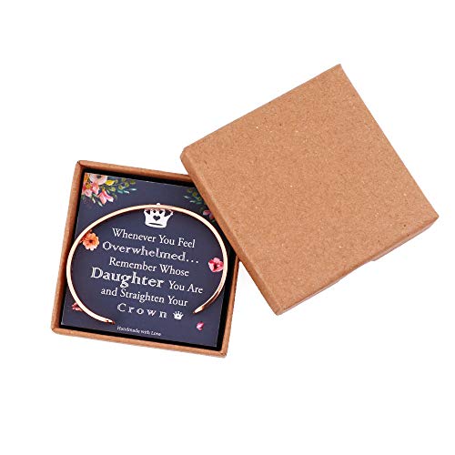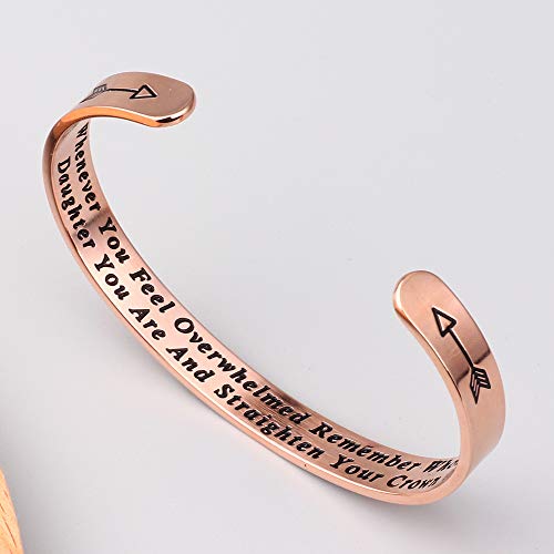 MEANINGFUL GIFTS FOR HER MANY OCCASION: Whenever You Feel Overwhelmed Remember whose daughter you are and straighten your crown bracelet, as a daily reminder of where she came from and how strong she is. Excellent choice of birthday gifts for daughter, inspiration gifts, be brave strong bracelet, daughter gifts from mom and dad.