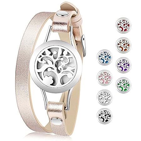 Essential Oil Diffuser Bracelet, Aromatherapy Bracelet Jewelry Stainless Steel Locket Leather Band with 8pcs Washable Refill Pads Birthday Gifts for Women,Girlfriend, Mother,Sister,Aunt.