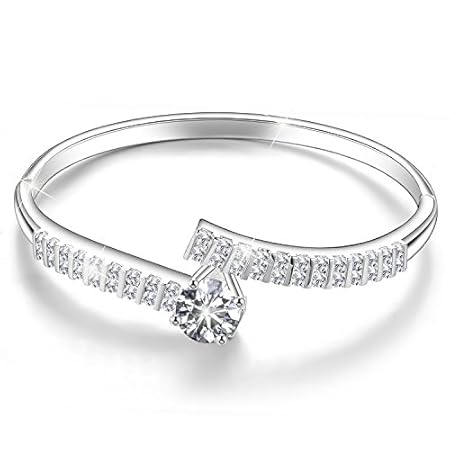 Menton Ezil Love Encounter Swarovski Crystals Bangle Bracelets White Gold Plated Adjustable Hinged Jewelry